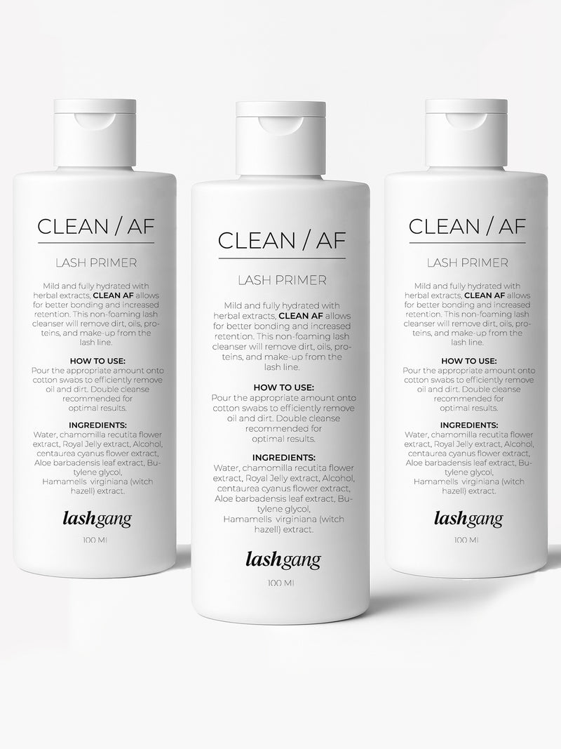 Clean AF is the non-foaming, no-rinse cleanser that makes lash prep faster and more effective. By removing oil, dirt, and residue in seconds, it sets up stronger adhesive bonds and longer retention. With the 3-Pack, you’ll always have enough on hand for salon use and retail to clients for daily lash care.